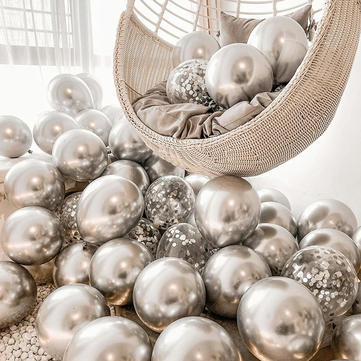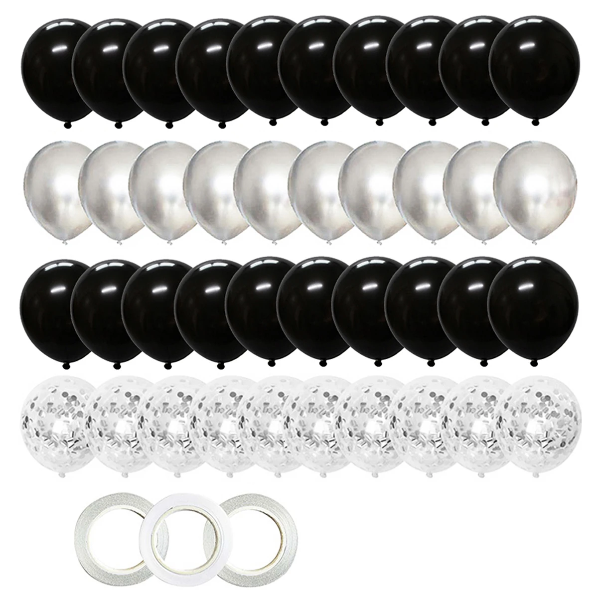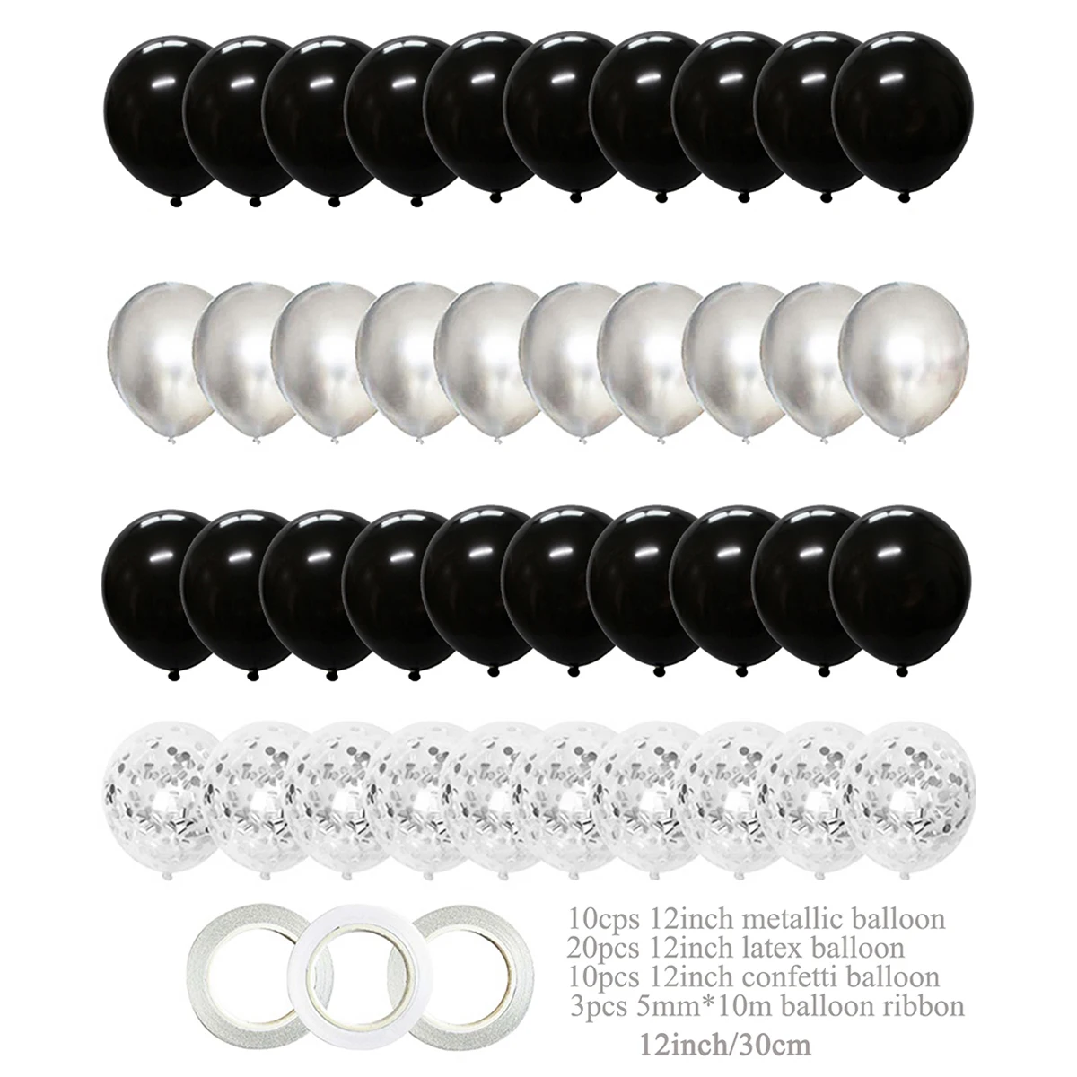 40pcs 12inch Silver Black Confetti Latex Balloons Boy Girl Birthday Adult Woman Man Party Decorations Graduation Father’s Day